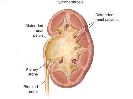 Your child has a blockage where the renal pelvis connects with the ureter, the tube that carries urine from the kidneys to the bladder. This narrowing causes dilation of the kidney, a condition called hydronephrosis. Hydronephrosis can usually be verified with an ultrasound and kidney scan.
