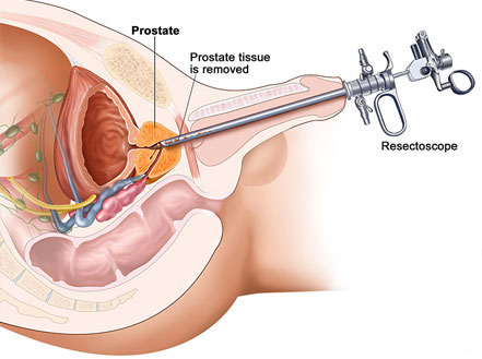 Transurethral resection of the prostate (TURP) is a surgery used to treat urinary problems due to an enlarged prostate. A combined visual and surgical instrument (resectoscope) is inserted through the tip of your penis and into the tube that carries urine from your bladder (urethra). The prostate surrounds the urethra. Using the resectoscope, your doctor trims away excess prostate tissue that's blocking urine flow. TURP is generally considered an option for men with moderate to severe urinary problems that haven't responded to medication. Traditionally, TURP has been considered the most effective treatment for an enlarged prostate. However, a number of other, minimally invasive procedures are becoming more effective, due to improved techniques and surgical tools. These minimally invasive procedures generally cause fewer complications and have a quicker recovery period than TURP. The risk of bleeding is generally higher with TURP, so it might not be the best option for certain men who take blood-thinning medications.